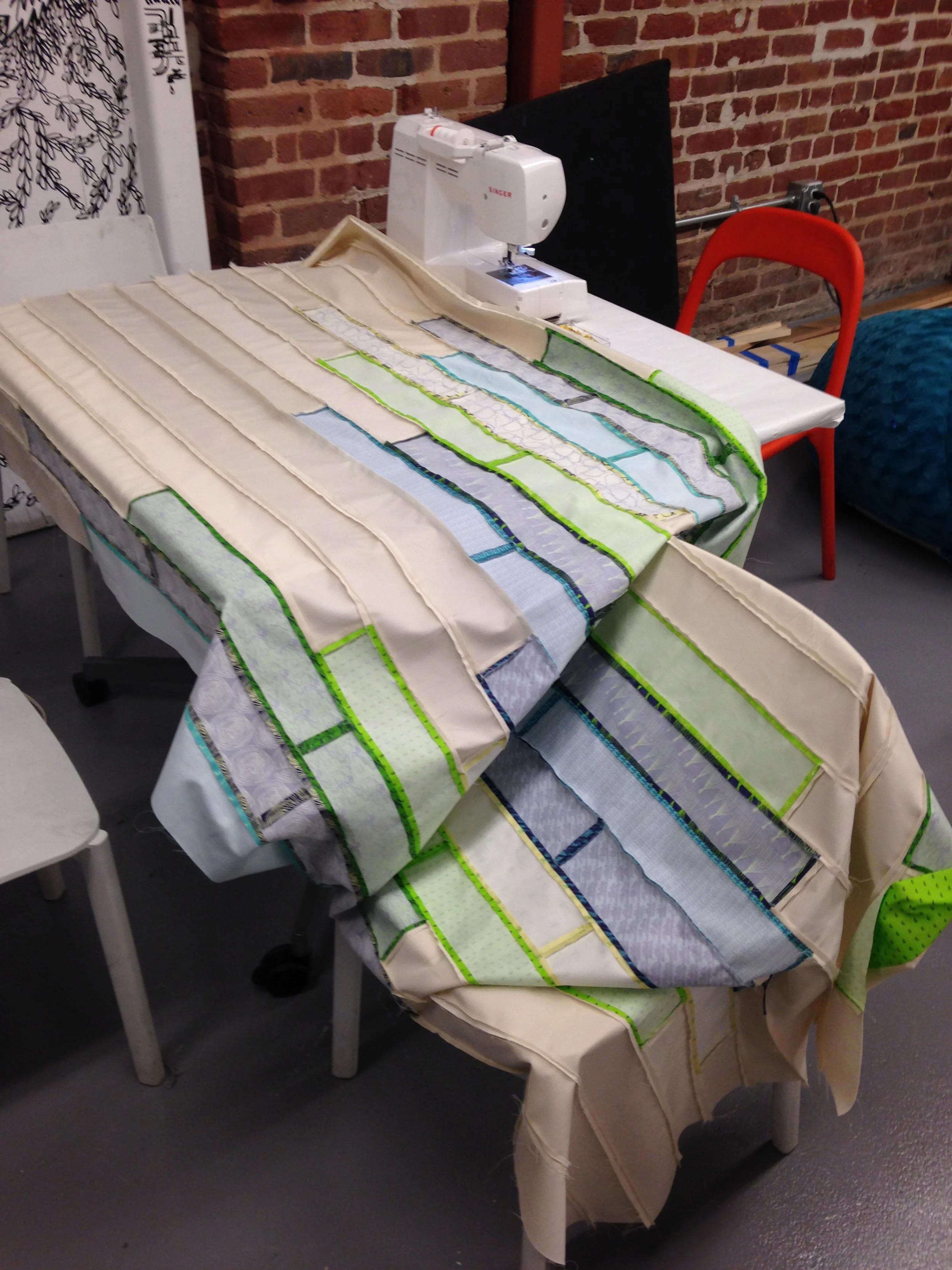 materials and processes: organic cotton fabric, print design, pattern design, sewing, quilting